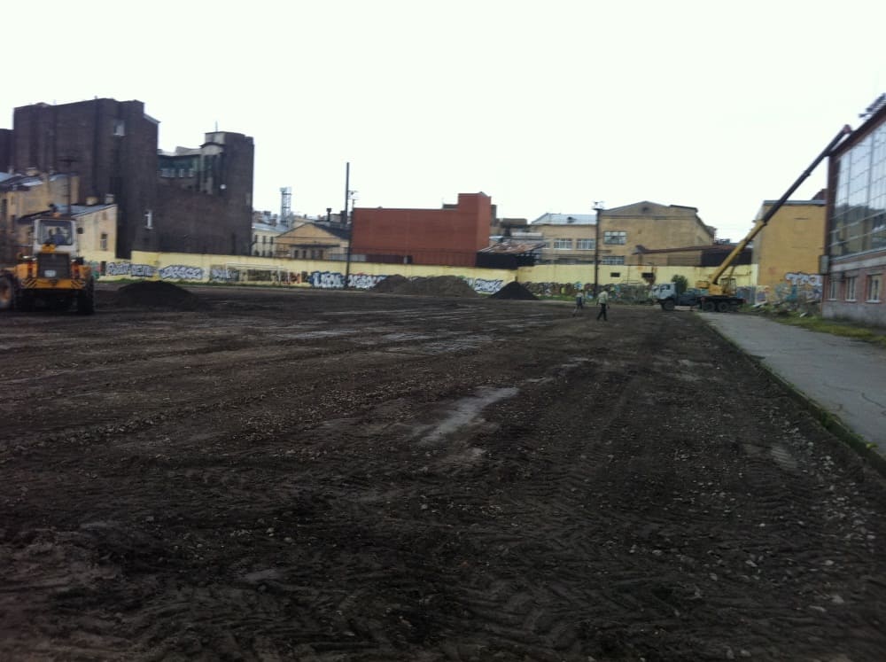 - Организация рельефа. При реконструкции футбольного поля снимается старое покрытие и устраивается новое основание с учетом правильной организации отвода воды и оптимального выбора высоты плоскостного сооружения.