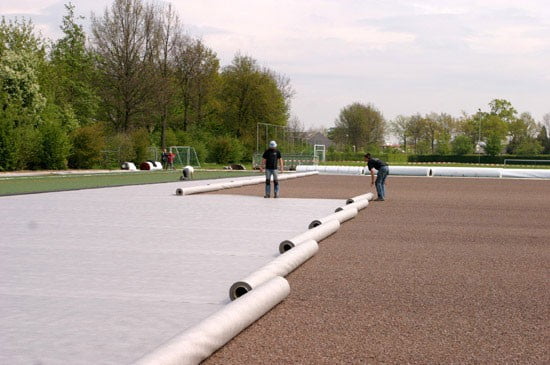 Водопроницаемая мембрана разделяет слои основания футбольного поля либо отделяет от него искусственное покрытие. Использование мембраны препятствует просадкам основания и существенно увеличивает срок службы травы.